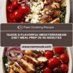 This Mediterranean diet meal prep recipe offers a delicious, heart-healthy, and time-saving way to enjoy balanced meals throughout the week. Featuring herb-seasoned chicken breasts, fluffy quinoa, and a vibrant vegetable salad with olives and creamy feta, this dish is packed with fresh flavors and nutritious ingredients. Ready in about 40 minutes, it’s perfect for busy schedules and supports steady energy with a balanced mix of protein, fiber, and healthy fats.