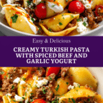 Anna Paul’s Viral Turkish Pasta Recipe is a flavorful and comforting dish that combines creamy garlic yogurt, spiced ground beef, and tender pasta, all topped with paprika butter, fresh cherry tomatoes, crumbled feta, and parsley. This quick and easy 20-minute recipe delivers complex Turkish-inspired flavors perfect for a cozy weeknight meal.