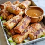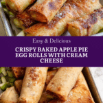 Delightful Apple Pie Egg Rolls combine the warm flavors of spiced apples and creamy cream cheese wrapped in crispy egg roll wrappers. Baked to golden perfection and coated in cinnamon sugar, they make a perfect dessert or snack served with a luscious caramel dipping sauce.