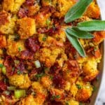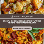 This Bacon Cornbread Stuffing is a savory, comforting side dish perfect for holiday meals or any special occasion. Crispy bacon, fresh herbs, and moist cornbread combine for a rich and flavorful stuffing that complements turkey beautifully.