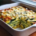 Baked Zucchini Spinach and Feta Casserole is a wholesome and flavorful dish combining tender zucchini, fresh spinach, and creamy feta cheese. This easy-to-make casserole is perfect for a nutritious weeknight meal or a cozy gathering, offering a comforting and savory experience with every bite.