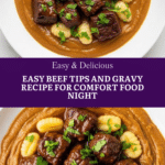 Beef Tips and Gravy is a comforting classic, perfect for a hearty weeknight dinner. Tender cubes of seared beef simmered in a rich, flavorful gravy make this dish a satisfying centerpiece served over mashed potatoes, rice, or egg noodles.
