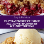 This Raspberry Crumble is a delightful blend of tart fresh berries topped with a buttery, nutty crumble. Perfect for a simple dessert, it combines warm spices and crunchy walnuts for a comforting treat that’s easy to make and sure to please.