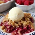 Keywords: raspberry crumble, berry dessert, crumble topping, walnut dessert, baked fruit dessert, easy raspberry recipe