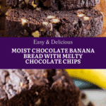 Keywords: chocolate banana bread, banana bread recipe, chocolate chip banana bread, easy banana bread, moist banana bread, baked banana bread