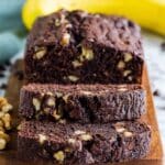 Keywords: chocolate banana bread, banana bread recipe, chocolate chip banana bread, easy banana bread, moist banana bread, baked banana bread