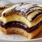 This Boston Cream Pie Cookie Dessert combines soft, buttery cookies with a rich vanilla custard filling and a smooth chocolate ganache topping, recreating the flavors of the classic Boston cream pie in a delightful handheld treat. Perfect for dessert lovers seeking an indulgent yet approachable recipe.
