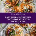 Keywords: Buffalo chicken tacos, spicy chicken tacos, easy taco recipe, buffalo sauce chicken, quick dinner, shredded chicken tacos