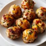 Keywords: Cheesy sausage balls, Rotel sausage balls, party appetizers, baked sausage bites, easy appetizers