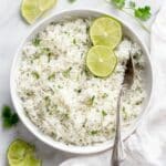Keywords: cilantro lime rice, Basmati rice, Mexican side dish, Instant Pot rice, stovetop rice, cilantro rice, lime rice