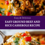 This classic Ground Beef and Rice Casserole is a hearty, all-in-one skillet meal perfect for weeknights. Featuring browned ground beef, flavorful spices, vegetables, and jasmine rice simmered in chicken broth, it combines protein, veggies, and rice in one pan for minimal cleanup and maximal flavor. Finished with fresh spinach, melted Mexican cheese, and a splash of lime juice, it’s a family-friendly dish with mild, kid-approved flavors that’s both budget-friendly and nutritious.