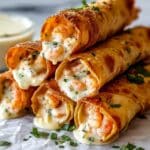 Crab Shrimp Queso is the ultimate party snack featuring a creamy and cheesy seafood filling wrapped in warm, crispy tortillas. This Tex-Mex inspired appetizer combines delicate cooked shrimp and crab meat with Monterey Jack cheese, cream cheese, and queso dip, enhanced with fresh cilantro and spices. Perfect for entertaining, these golden fried rolls deliver gooey, irresistible flavor in every bite.