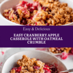 Keywords: cranberry casserole, cranberry dessert, holiday dessert, apple cranberry bake, fall dessert, crumble topping