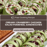 Keywords: cranberry chicken salad, pinwheel sandwiches, appetizer, no-cook recipe, finger food, party snacks