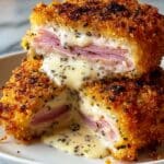 Keywords: Chicken Cordon Bleu, creamy chicken recipe, baked chicken, crispy chicken rolls, comfort food, cheesy chicken, ham and cheese chicken