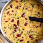 Keywords: Mexican corn soup, creamy bean soup, pinto bean soup, kidney bean soup, creamy corn soup, cheesy Mexican soup, comforting soup recipe