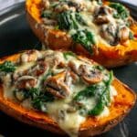 This creamy mushroom and spinach stuffed sweet potato recipe is a comforting and nutritious meal perfect for any night of the week. Tender baked sweet potatoes filled with a savory blend of sautéed mushrooms, spinach, and creamy cheeses make for a satisfying vegetarian dish.