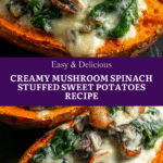 This Creamy Mushroom and Spinach Stuffed Sweet Potatoes recipe features tender roasted sweet potatoes filled with a savory mixture of sautéed mushrooms, spinach, garlic, and creamy cheeses. It’s a comforting and nutritious vegetarian dish perfect for a hearty lunch or dinner.