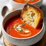 Store leftover tomato soup in an airtight container in the refrigerator for up to 3 days. Reheat gently on the stove or in the microwave, stirring occasionally. If the soup thickens while stored, add a splash of broth or water to reach desired consistency when reheating.