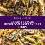 Keywords: Tuscan mushroom pasta, creamy pasta skillet, vegetarian pasta, easy dinner recipe, mushroom cream sauce pasta
