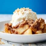 7. Serve: Scoop the warm apple cobbler into bowls and serve immediately topped with a scoop of vanilla ice cream for a deliciously creamy contrast.