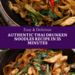 Drunken noodles, or Pad Kee Mao, is a vibrant Thai stir-fry dish known for its bold flavors and spicy kick. Featuring tender chicken, fresh vegetables, and aromatic holy basil, this recipe brings the authentic taste of Thailand right to your kitchen in just 35 minutes.