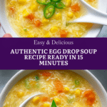 This Egg Drop Soup recipe is a quick, authentic Chinese-style soup made with fresh eggs, chicken stock, and vegetables. Ready in just 15 minutes, it offers a comforting, flavorful appetizer that features delicate egg ribbons in a seasoned broth thickened with cornstarch.