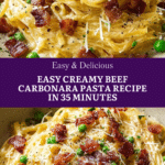 Enjoy a rich and comforting twist on classic carbonara with this easy creamy beef carbonara pasta. It’s quick to prepare and perfect for a satisfying weeknight dinner without any alcohol.