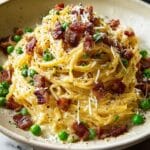 This Easy Creamy Carbonara Pasta combines tender spaghetti with crispy beef bacon, a rich egg and cheese sauce, and fragrant garlic for a comforting Italian-inspired dish that’s quick and simple to prepare. The sauce is luxuriously creamy without any cream, relying on the perfect balance of Pecorino Romano, Parmesan, and reserved pasta water to create an authentic, silky texture. Perfect for a satisfying weeknight meal for four.