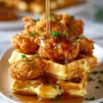 Delight in these easy Mini Chicken & Waffles Bites that combine crispy chicken nuggets with buttery toasted waffles, all drizzled in a sweet and spicy hot honey sauce. Perfect as a fun appetizer or snack, these bite-sized treats deliver a balance of flavors and textures that will please any crowd.