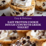 These Easy Protein Cookie Dough Cups with Greek Yogurt are a delicious and nutritious no-bake treat combining creamy, protein-packed Greek yogurt with a soft, oat-based cookie dough. Perfect as a healthy snack or dessert, they blend wholesome ingredients like rolled oats, vanilla protein powder, nut butter, and mini chocolate chips for a guilt-free indulgence that satisfies your sweet tooth while supporting your fitness goals.