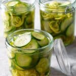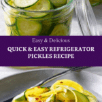 Keywords: refrigerator pickles, easy pickles recipe, quick pickles, cucumber pickles, no canning pickles