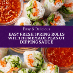 Fresh Spring Rolls with perfectly cooked shrimp, vermicelli noodles, crisp vegetables, and aromatic herbs wrapped in delicate rice paper, served with two irresistible dipping sauces: a tangy Vietnamese fish sauce-based dip and a creamy peanut-sesame ginger sauce.