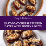 Keywords: goat cheese stuffed dates, appetizer, Medjool dates, easy party snacks, no cook recipe, sweet and savory, healthy snacks