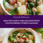 Keywords: Zuppa Toscana, healthy soup, cauliflower soup, chicken sausage, kale soup, vegetable broth soup, low fat soup, Italian soup