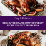 Keywords: roasted turkey, herb butter turkey, maple syrup turkey, Thanksgiving turkey, holiday turkey recipe, juicy turkey, crispy skin turkey, maple herb butter