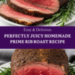 This Homemade Prime Rib Roast recipe delivers tender, juicy, and flavorful prime rib with a simple herb crust of fresh rosemary, thyme, and garlic. Perfect for special occasions, this easy method uses low and high oven temperatures and a meat thermometer to achieve a perfect medium-rare roast with minimal fuss, allowing you to impress guests with a restaurant-quality centerpiece.
