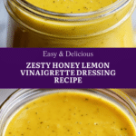 Keywords: honey lemon vinaigrette, salad dressing, homemade vinaigrette, honey lemon dressing, Mediterranean salad dressing, tangy honey dressing, healthy salad dressing
