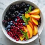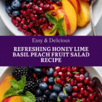This honey lime basil peach fruit salad is a vibrant and refreshing dish perfect for summer gatherings. Made with fresh peaches, blackberries, blueberries, and pomegranate, it’s lightly tossed in a honey and lime dressing with fragrant basil for a unique twist. It’s a delightful side that pairs wonderfully with BBQs, grilled meats, or as a healthy snack.