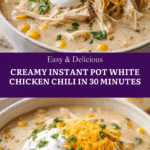 Instant Pot White Chicken Chili is a warm and hearty dish featuring tender chicken, creamy white beans, and a flavorful mix of spices. Ready in under 30 minutes, it’s an ideal comfort meal for busy weeknights that you can customize with your favorite toppings.