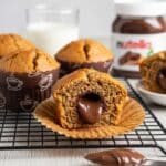 Store leftover muffins in an airtight container at room temperature for up to 3 days. To reheat, warm them in a microwave for 15-20 seconds or in a preheated oven at 300℉ (150℃) for about 10 minutes. They are best enjoyed slightly warm to savor the melted Nutella center.
