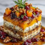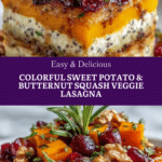 This layered sweet potato, butternut squash, and carrot lasagna is a vibrant and comforting dish perfect for a cozy dinner. Combining roasted vegetables with tangy feta, toasted walnuts, and a sweet cranberry glaze, it offers a delightful blend of flavors and textures that’s sure to impress.