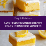 Chewy and soft, these lemon blondies are a dream dessert for lemon lovers. Packed with fresh lemon juice and zest, they offer a refreshing, bright flavor and are ready in under 30 minutes—a perfect sweet treat for the end of summer.