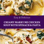 Marry Me Chicken Soup is a creamy, comforting dish packed with tender rotisserie chicken, sun-dried tomatoes, fresh basil, and a blend of cheeses. This flavorful soup is finished with tender pasta and spinach, making it a complete and satisfying meal perfect for cozy nights.