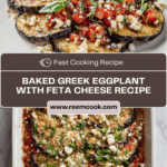 Keywords: Melitzanes Me Feta, Greek baked eggplant, feta cheese recipe, vegetarian Greek recipe, eggplant side dish, summer vegetable bake