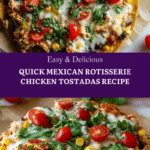 Keywords: Mexican tostadas, rotisserie chicken recipe, quick Mexican dinner, shredded chicken tostadas, baked tostadas, easy weeknight meal, family-friendly recipe, customizable toppings