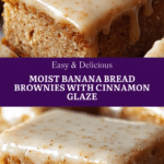 Keywords: banana bread brownies, moist banana brownies, cinnamon glaze brownies, easy banana recipes, dessert brownies