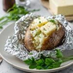 - Wrapping in foil helps retain moisture, making the potatoes tender inside.