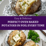 Keywords: baked potatoes, oven baked potatoes, foil wrapped potatoes, easy side dish, russet potatoes