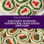 Keywords: party pinwheel sandwiches, easy appetizer, make-ahead, cream cheese tortillas, deli meat pinwheels, finger food, party food